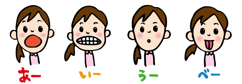 「あいうべ体操」は 大きく口を開く「あー」、口を横に広げて「いー」、口をすぼめて「うー」、下を強めに前下に出して「べー」と、
