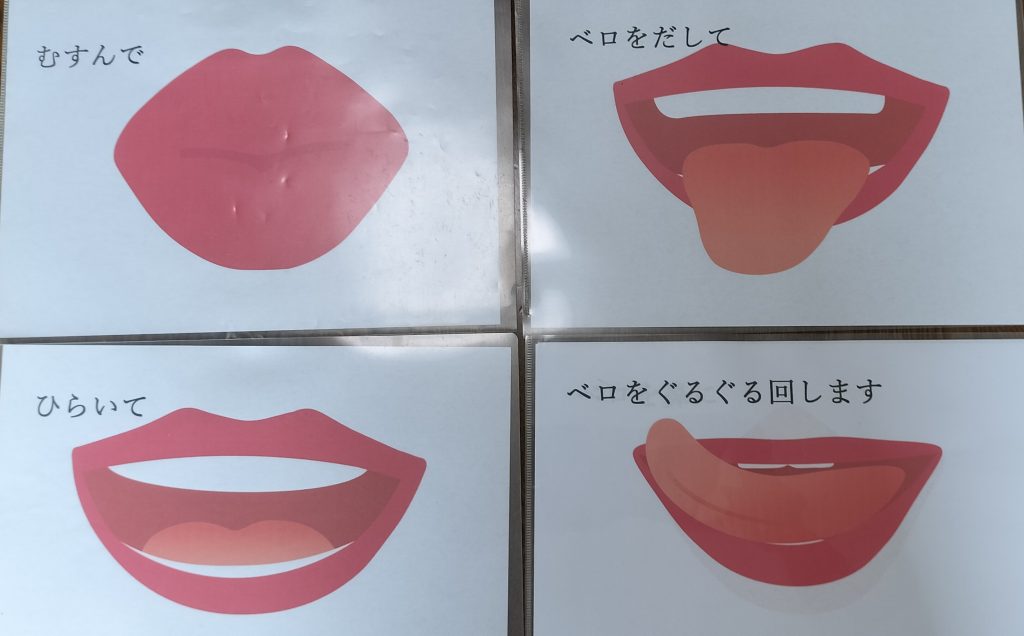 画像は、『むすんでひらいて』の歌に合わせての口腔体操の見本です。